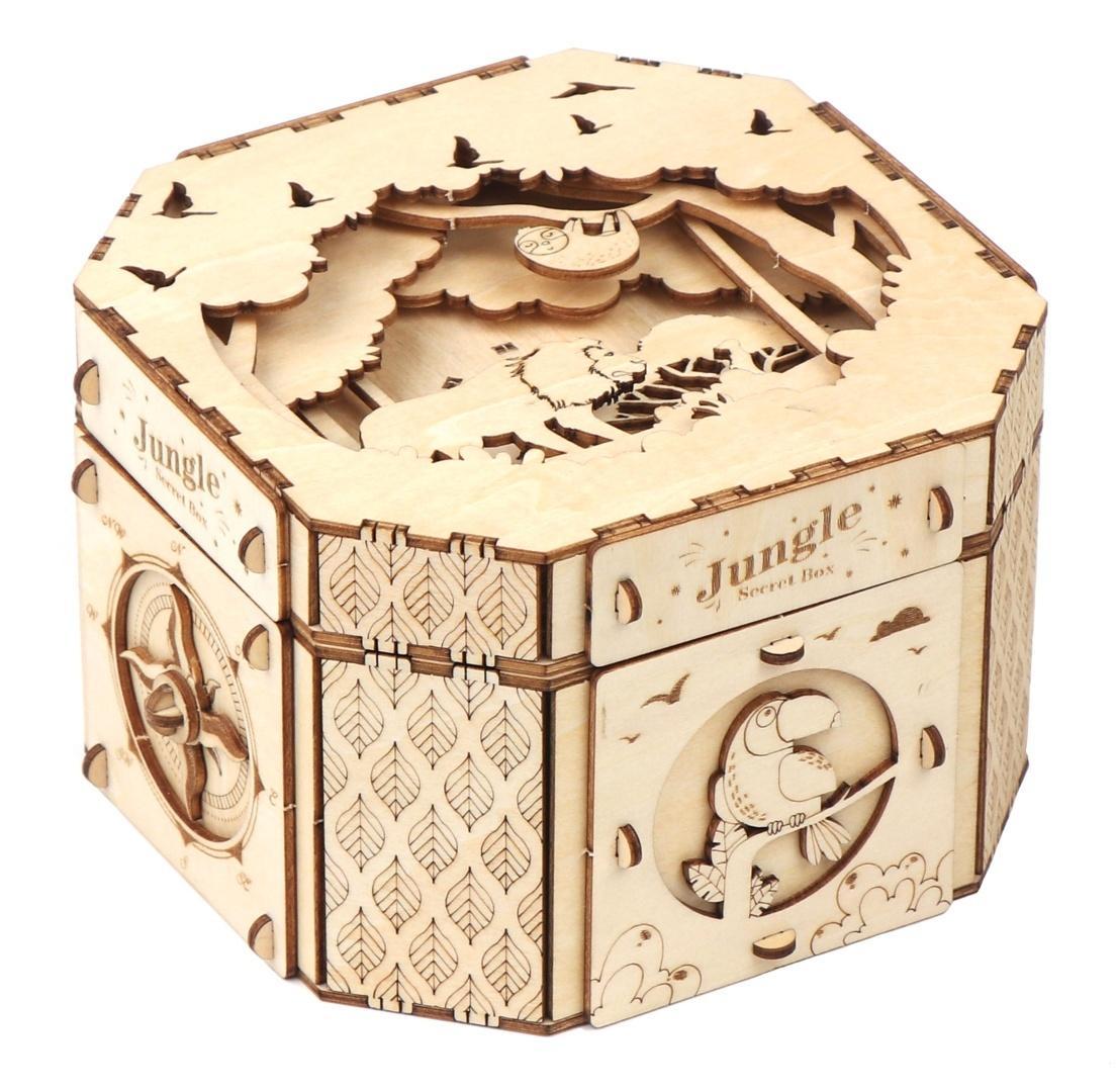 Po samodzielnym złożeniu łamigłówki, otrzymasz eleganckie miejsce do przechowywania Twoich małych skarbów, zabezpieczone tajnym zamknięciem wykorzystującym zjawisko fizyczne zwane siłą odśrodkową. Eureka 3D Puzzle jest cenionym producentem łamigłówek w Europie. Różnorodny asortyment, niezmienna dbałość o wysoką jakość wykonania oraz duża troska o estetykę i wartość intelektualną oferowanych produktów zjednały firmie uznanie na całym świecie. Wszystkie prezentowane łamigłówki świetnie sprawdzają się w zróżnicowanym towarzystwie. Bawią, uczą, zmuszają do myślenia i uwolnienia twórczej wyobraźni. Pozwalają na znalezienie "wspólnego języka" ludziom w różnym wieku i stają się początkiem wielkiej pasji, często łącząc całe rodziny wokół wspólnego hobby. Uwaga: nie potrzeba żadnych dodatkowych narzędzi; czas potrzebny do złożenia łamigłówki około 60 minut. ZAWARTOŚĆ: 4 arkusze łamigłówki Jungle Secret