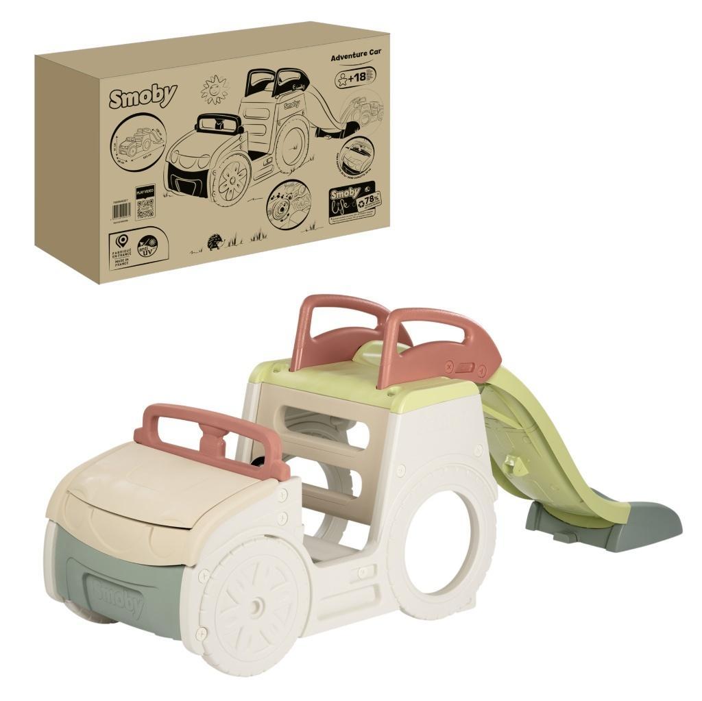 Nowa przestrzeń do zabawy dla najmłodszych! Odporna i stabilna konstrukcja. Główne cechy: 1 piaskownica z ochronną pokrywą, miejsce kierowcy z kierownicą, klaksonem mechanicznym, stacyjką na kluczyk, 1 zjeżdżalnia (150cm), ergonomiczna drabinka z antypoślizgowymi stopniami. 78% użytego do produkcji domku plastiku pochodzi z recyklingu. Powłoka ANTI-UV chroniąca przed blaknięciem kolorów na słońcu. Wyprodukowana we Francji.