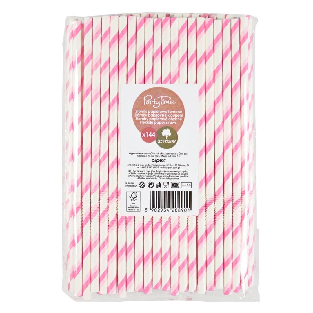 Słomki papierowe łamane różowe, długość ok. 20cm. 144 sztuki w opakowaniu.