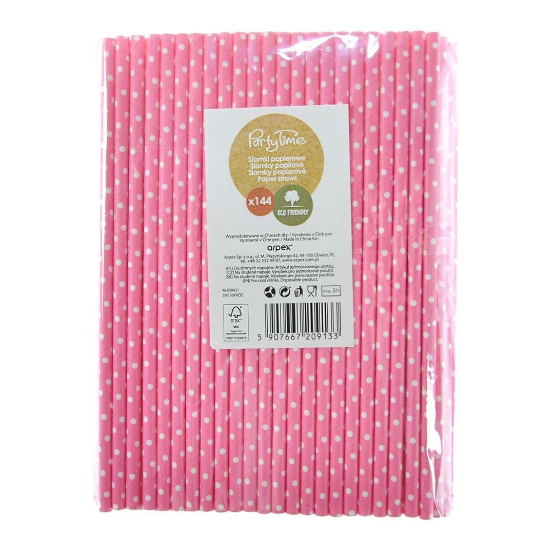 SŁOMKI PAPIEROWE RÓŻOWE W BIAŁE KROPKI 144SZT